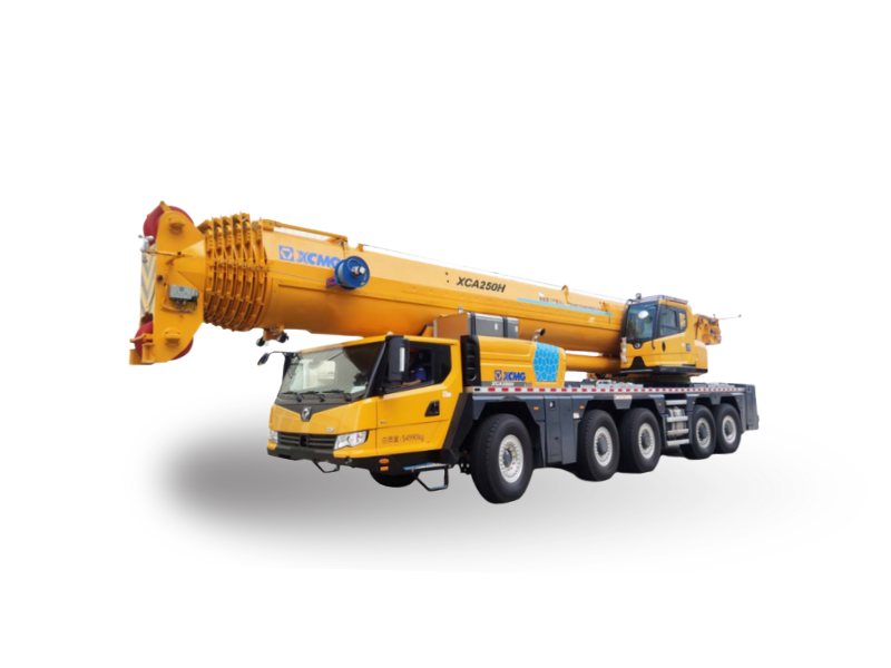 La grúa todoterreno XCA250H de XCMG es una grúa de alto rendimiento diseñada para proyectos de alta exigencia como  construcción pesada, infraestructura y montaje. Con una capacidad de 250 toneladas y una pluma principal de 75 metros, extensibles hasta 107 metros, esta grúa combina potencia, versatilidad y tecnología avanzada para operar en las condiciones más exigentes.